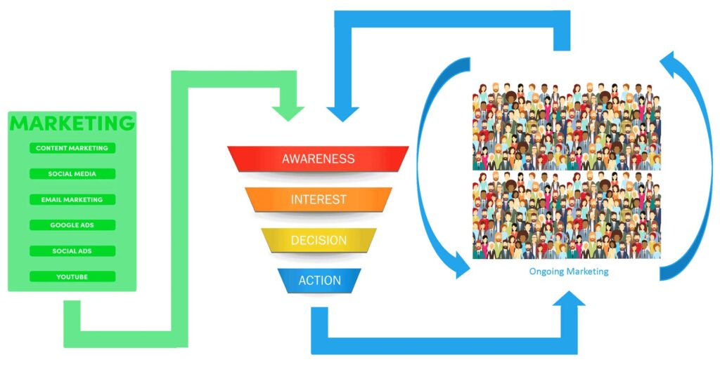 blend of marketing to drive traffic and a well-designed website that acts as a sales funnel. This combination ensures a steady flow of leads, converting visitors into customers.